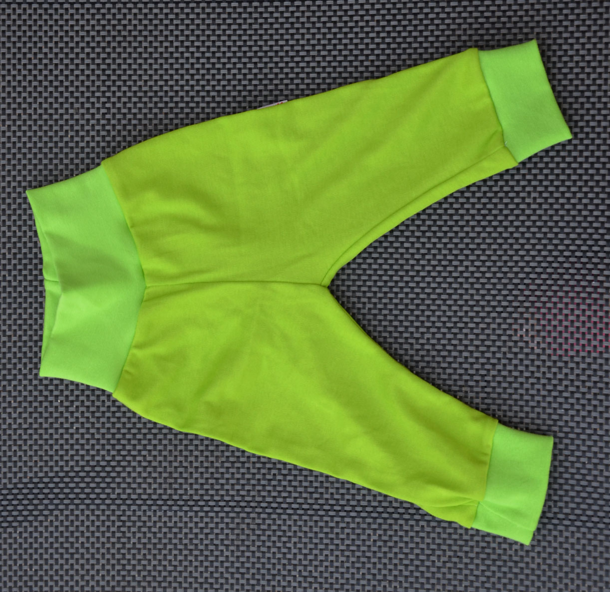 Dětské úpletové tepláčky jednobarevné Zelené. Díky lemům u kotníku je možné zakoupit kalhoty o velikost větší a využít jako rostoucí. Vyžší pružný lem v pase, který se miminku přizpůsobí a nikde netlačí. V lemu navíc připravena i dírka na gumu. Od vel. 98 šijeme tepláčky s nižším lemem s již navlečenou gumou, která je přístupná.