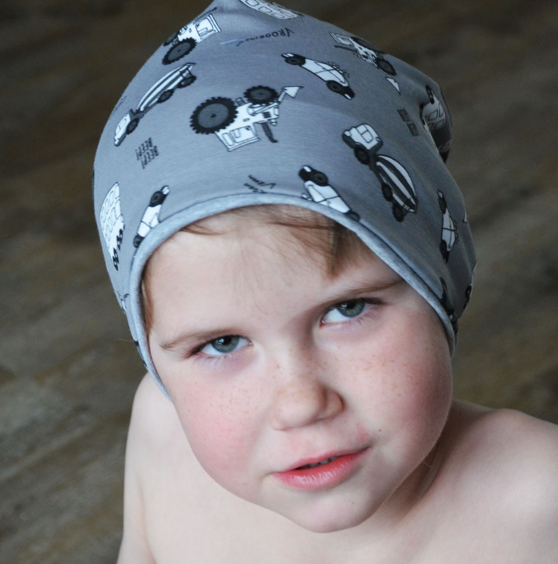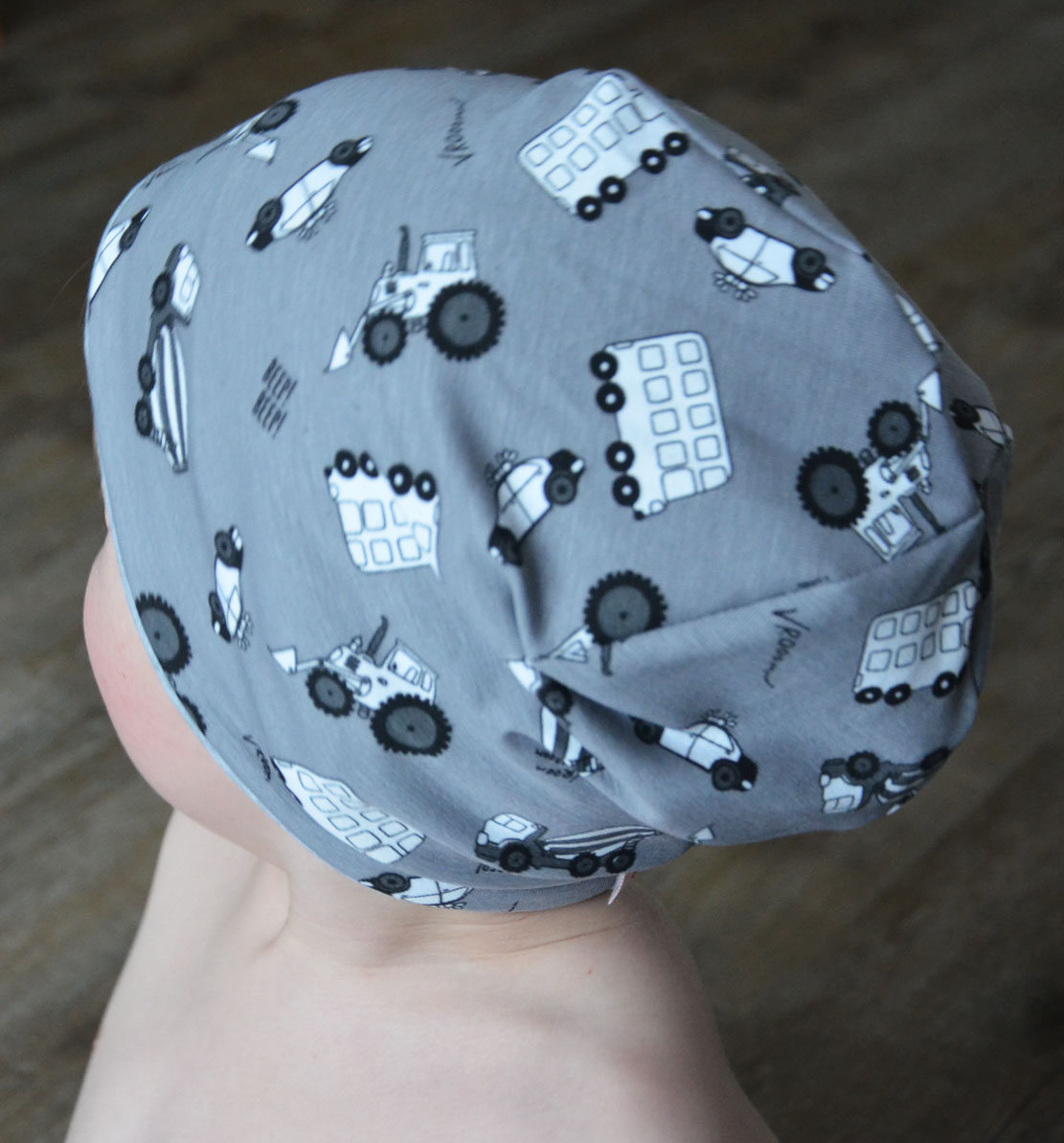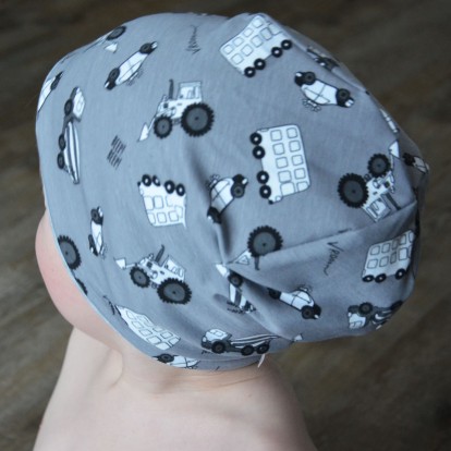 Dětská čepice oboustranná Vehicle na šedé