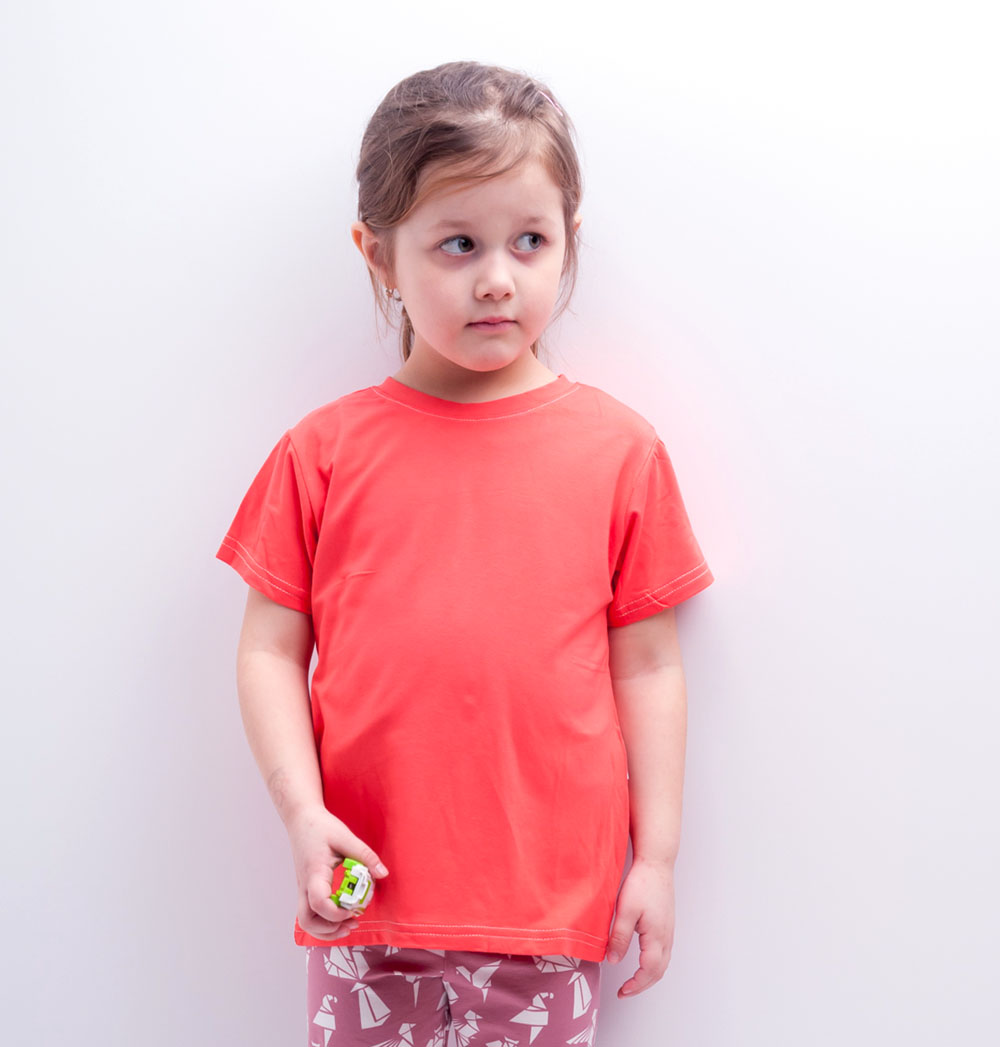 Tričko s krátkým rukávem v lososové barvě, pružné, lehce kombinovatelné.
