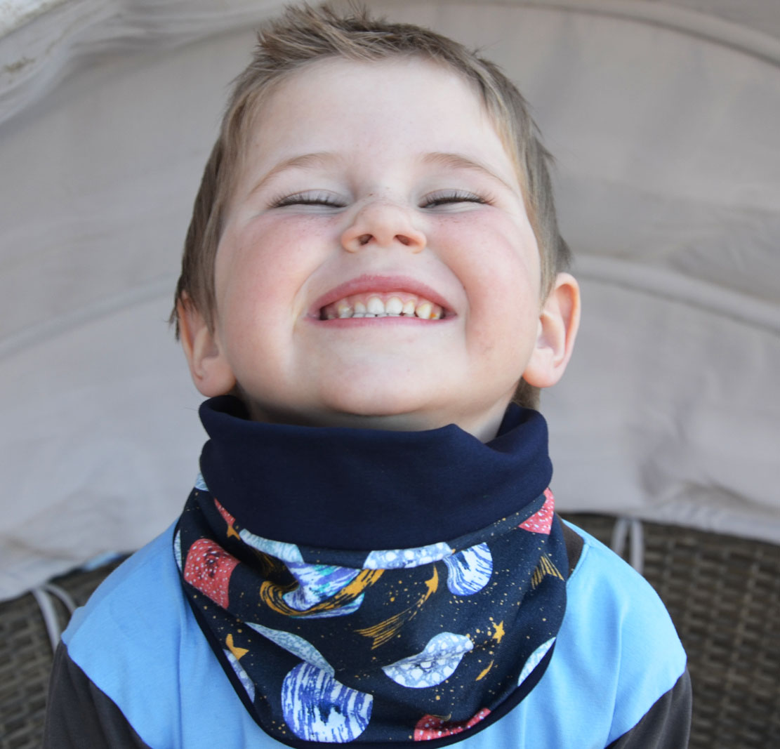 Dostupné ve dvou velikostech: obvod 44 - 50 cm (cca 9 -24 měsíců) a obvod 50 - 54 cm (cca 2 až 8 let). Pokud má být tunel více na krk, doporučujeme menší obvod i pro starší děti.