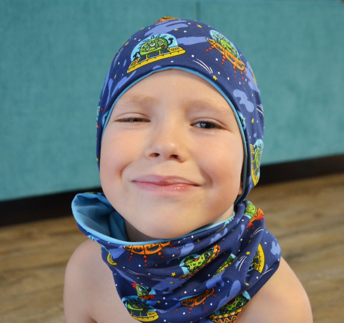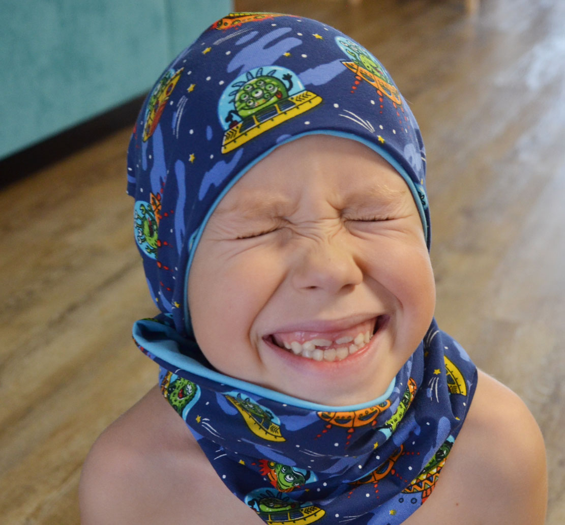 Dostupné ve dvou velikostech: obvod 44 - 50 cm (cca 9 -24 měsíců) a obvod 50 - 54 cm (cca 2 až 8 let). Pokud má být tunel více na krk, doporučujeme menší obvod i pro starší děti.