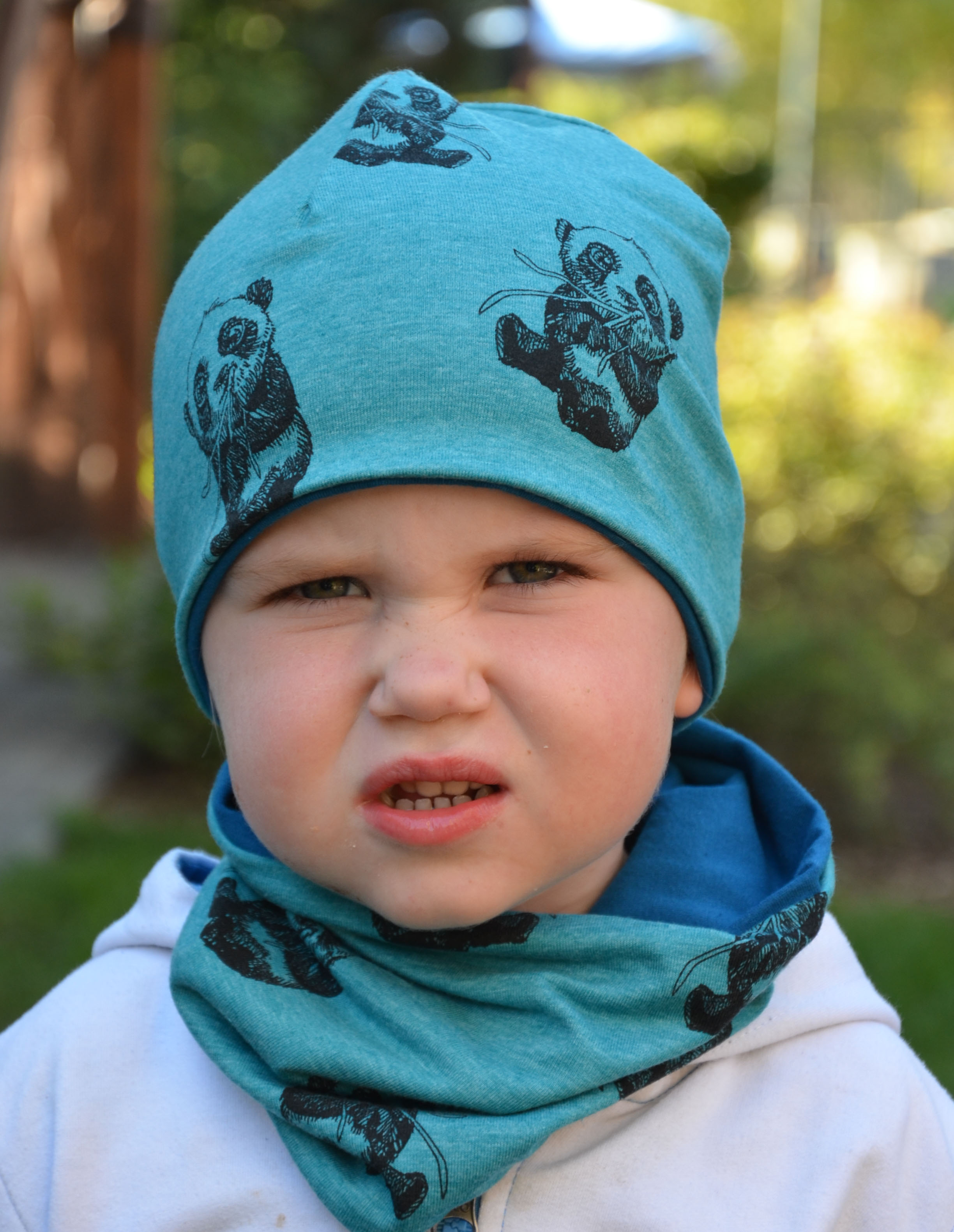Doble čepice Panda/ petrolejový úplet