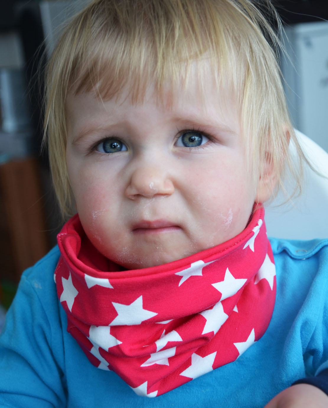 Dostupné ve dvou velikostech: obvod 44 - 50 cm (cca 9 -24 měsíců) a obvod 50 - 54 cm (cca 2 až 8 let). Pokud má být tunel více na krk, doporučujeme menší obvod i pro starší děti.