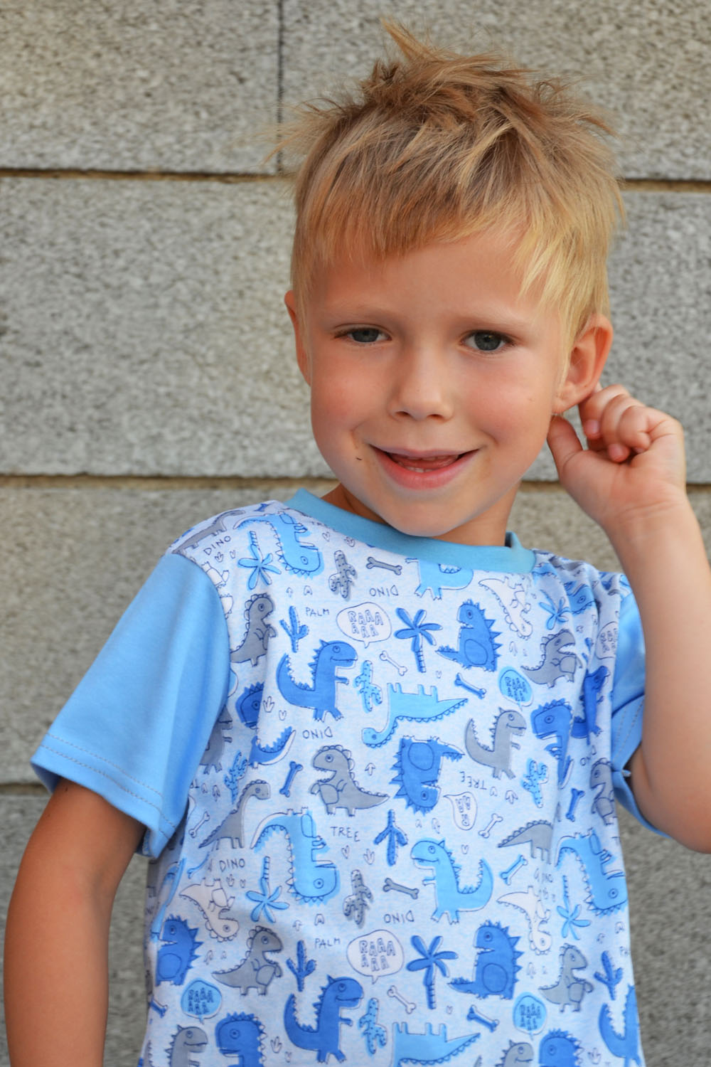 Potisk Dinosauři v kombinaci se sv. modrou (spodní díl a rukávy vrchního dílu)