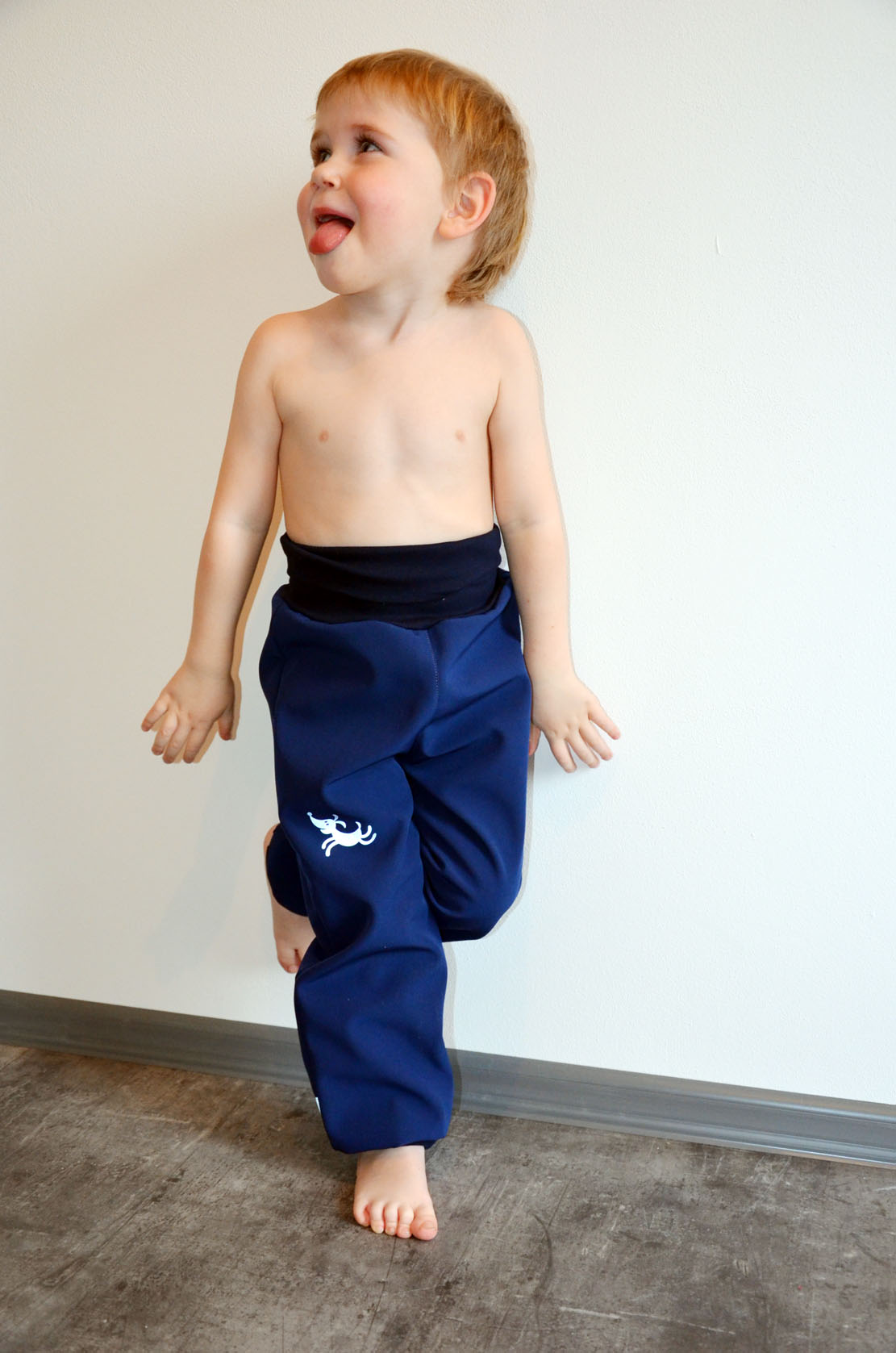 Praktické rostoucí softshellové kalhoty  jednoduchého střihu s vysokým pasem a zároveň praktickou gumičkou u kotníků (ta je přístupná, až dítě doroste, gumičku lze odstarnit)