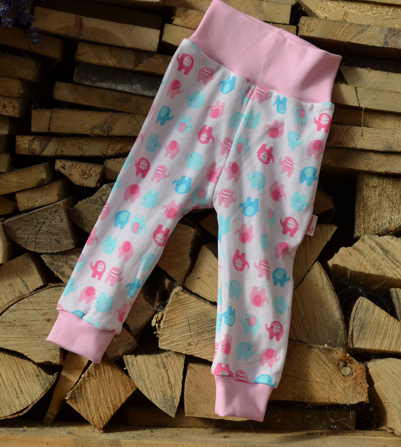 Úpletové tepláčky Sloni růžoví v.92