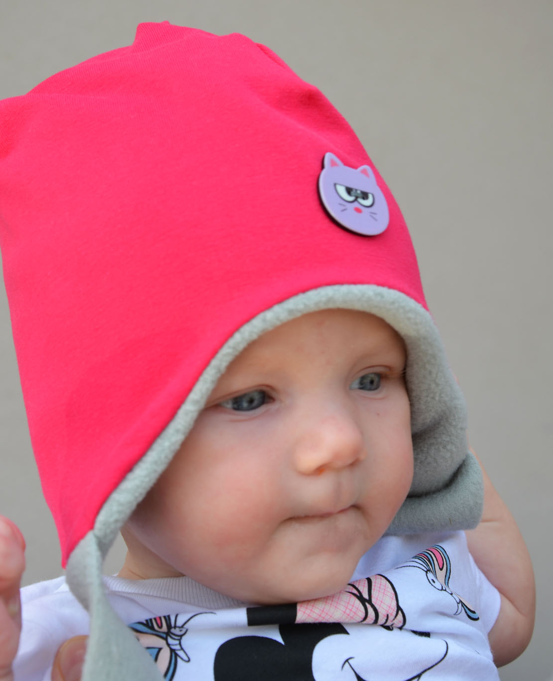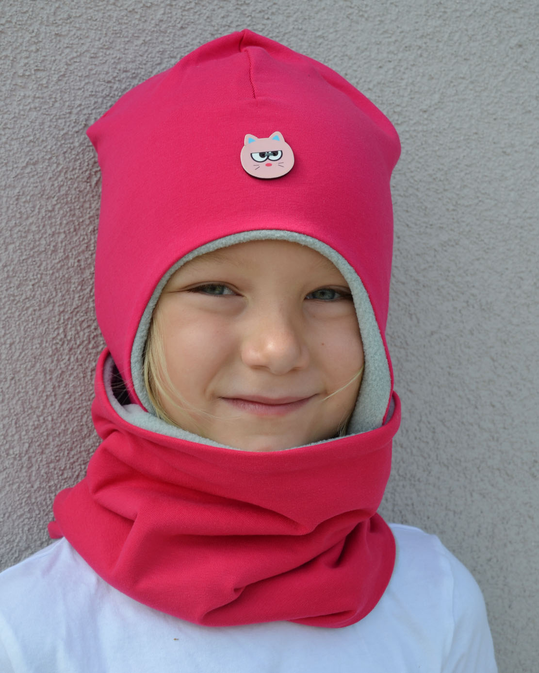 Jednobarevná malinově růžová s knoflíčkem Kočka, v kombinaci s růžovým fleecem.